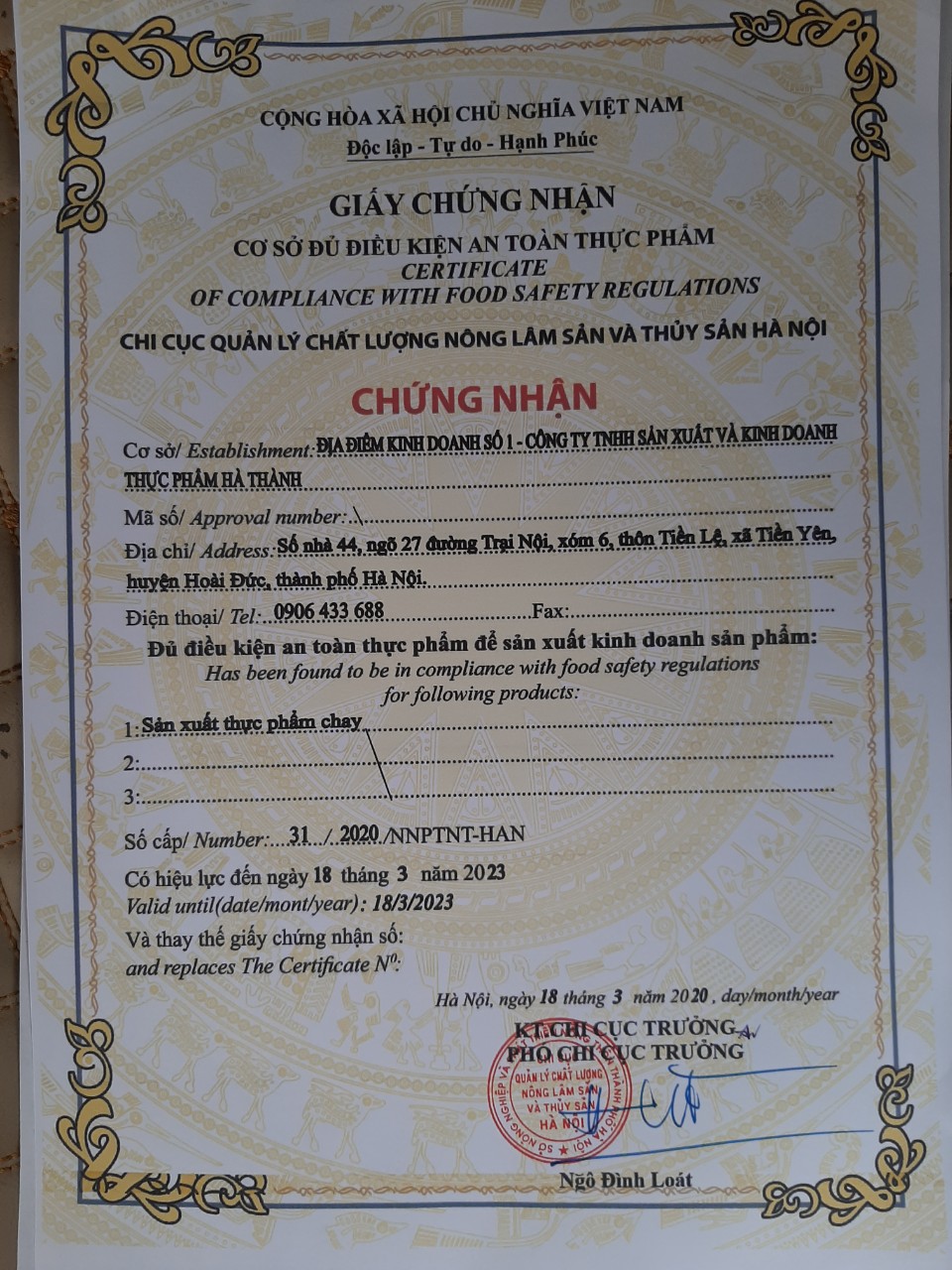 CÔNG TY TNHH SẢN XUẤT & KINH DOANH THỰC PHẨM HÀ THÀNH - TUYỂN ĐẠI LÝ CHAY TRÊN TOÀN QUỐC"![]()